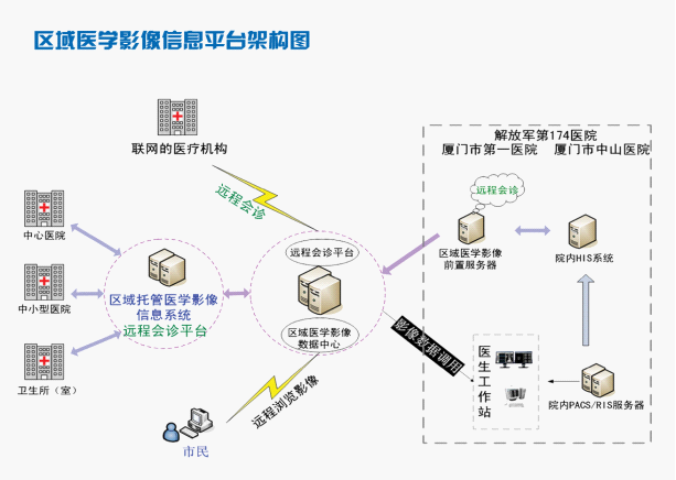美深信息科技(廈門)有限公司參與建設(shè)的“廈門市市民健康信息系統(tǒng)----醫(yī)學(xué)影像信息系統(tǒng)”項目,是全國首例基于市民健康檔案的醫(yī)學(xué)影像信息系統(tǒng),項目于2009年2月29日正式啟用。目前已將廈門市已具有PACS/RIS的醫(yī)院(廈門市第一醫(yī)院、廈門市中山醫(yī)院和解放軍第174醫(yī)院)的影像信息融入在該項目建設(shè)的市衛(wèi)生局區(qū)域醫(yī)學(xué)影像數(shù)據(jù)中心;對于鄉(xiāng)鎮(zhèn)、社區(qū)醫(yī)院則建立影像數(shù)據(jù)托管的模式,與市民健康信息系統(tǒng)完美整合形成一個完善的網(wǎng)上市民健康信息共享平臺,以便全市各醫(yī)療機構(gòu)共享使用。避免病人重復(fù)拍片、重復(fù)檢查、減輕病人負擔(dān)。